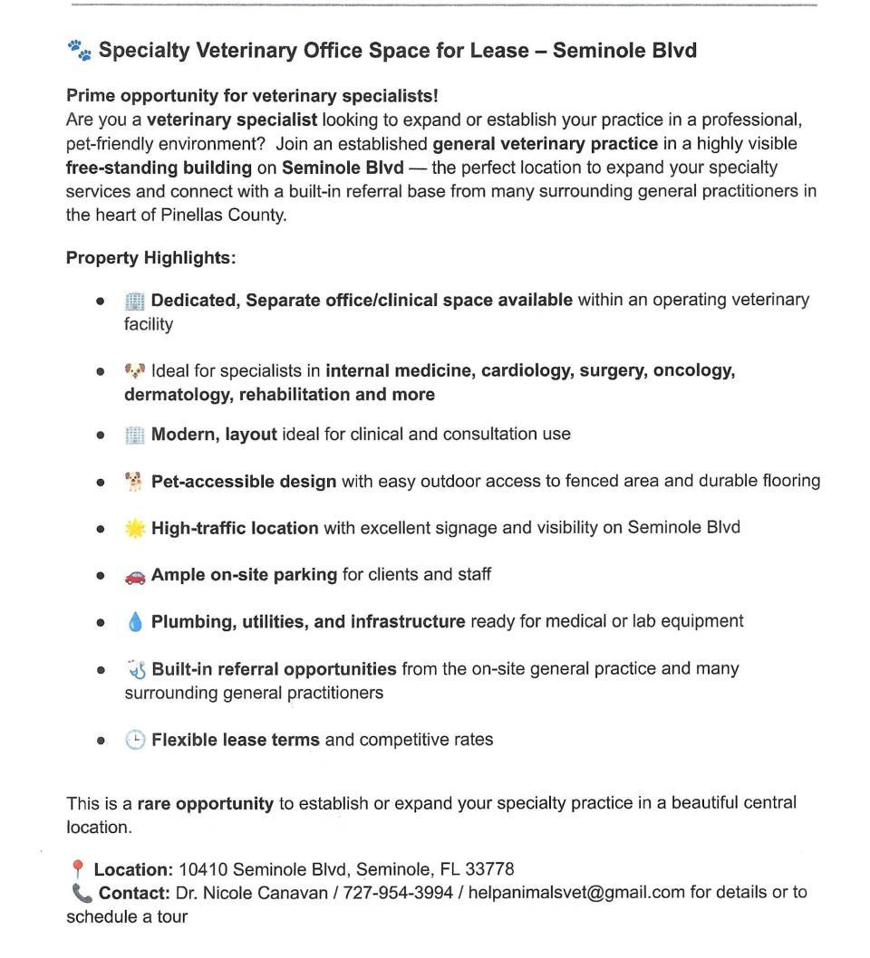 If the status of your classified ad has changed or you wish to include an ad in the PCVMA newsletter, please contact Dr. Don Morgan at Donmorgansr@aol.com or 727-397-7387 (PAF/PCVMA Office) or 727-410-7856 (Cell) for the next newsletter. Also, if you change your e-mail address or practice location, please notify my in order to continue…